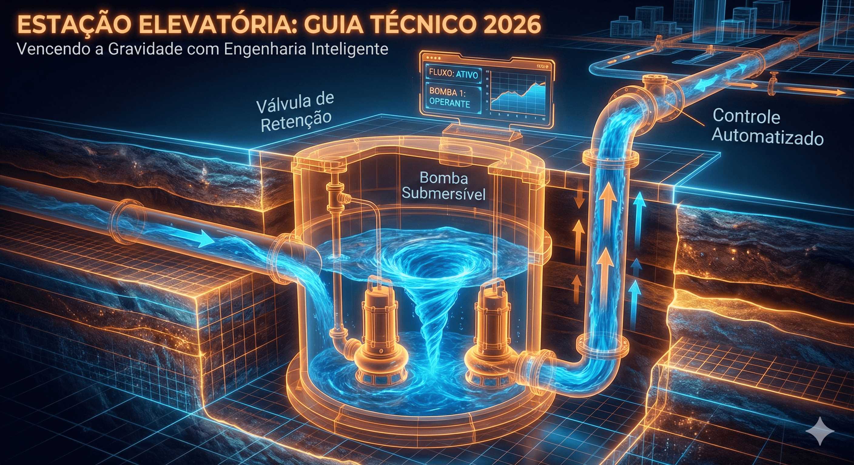 Mais do que um conjunto de bombas, a estação elevatória é um sistema completo de engenharia que garante o transporte seguro e eficiente de efluentes quando a topografia ou o projeto não permitem escoamento gravitacional.