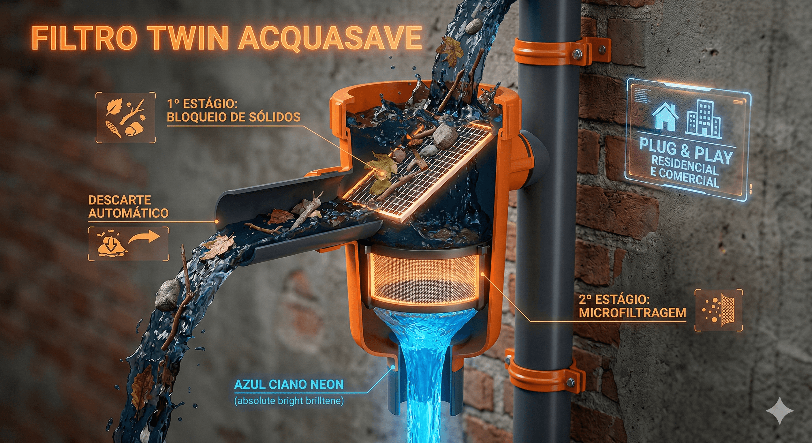 Filtro TWIN AcquaSave: por que a dupla filtragem muda o resultado do seu sistema de captação