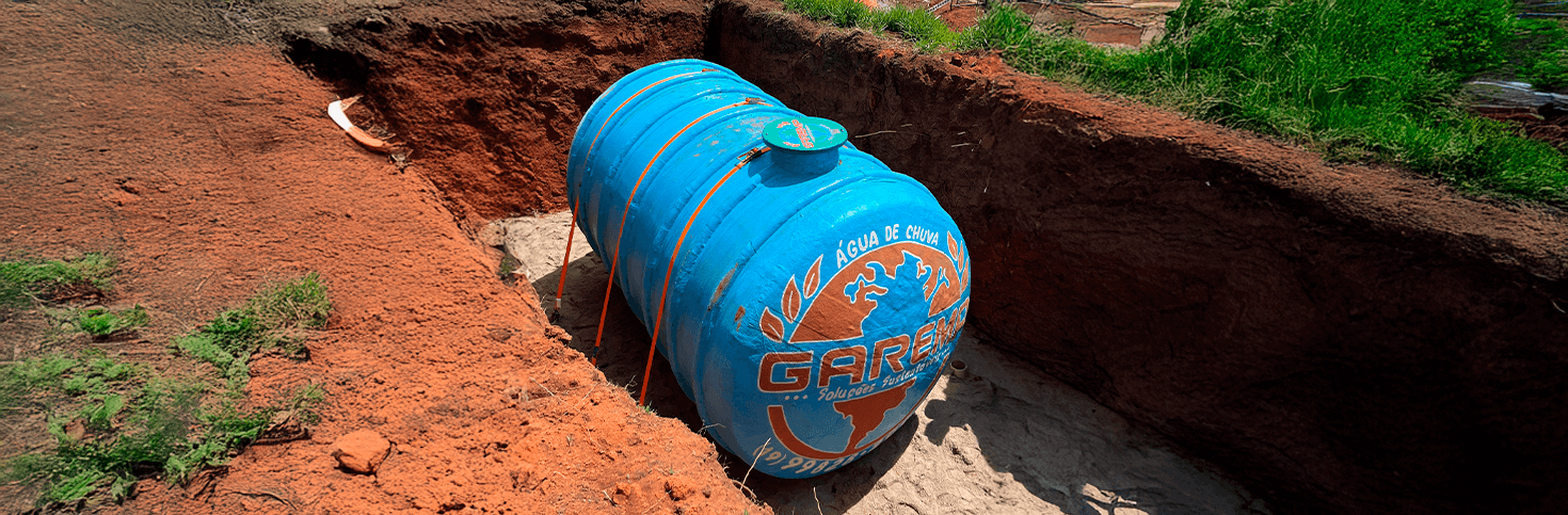 Uma cisterna enterrada é um sistema de armazenamento de água da chuva instalado sob o solo, projetado para suportar o peso do solo e veículos leves em áreas de circulação controlada. Diferente de reservatórios convencionais, que precisam de estruturas de concreto reforçado ao redor, a cisterna subterrânea GAREMP é autoportante: a própria estrutura em PRFV suporta as pressões externas, eliminando custos extras com obras civis pesadas.